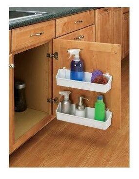 The 2-Tier Door Storage Tray provides additional storage on cabinet doors, offering two spacious tiers for organizing small kitchen or bathroom essentials. Its space-saving design keeps items within easy reach while maximizing cabinet space for a more organized and functional setup.